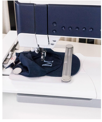 Enjoy monogramming and embroidering caps, hats and other projects. Simply attach to your PFAFF® 180 x 130mm creative Metal Hoop (sold separately) to embroider letters, logos and your favorite designs.