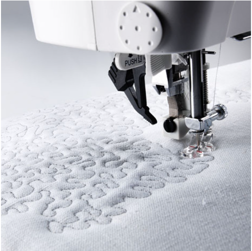 The Open-Toe Free-motion Foot is for wonderful free-motion sewing and quilting. This foot has an extra-large opening cut out in the front to give you an optimal view of your free-motion sewing and quilting.