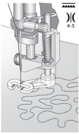 - Lower the Open-Toe Free-motion Foot into the free-motion/darning position by either selecting the free-motion icon on the touch screen of your machine or manually setting the presser foot lifter in the free-motion position.