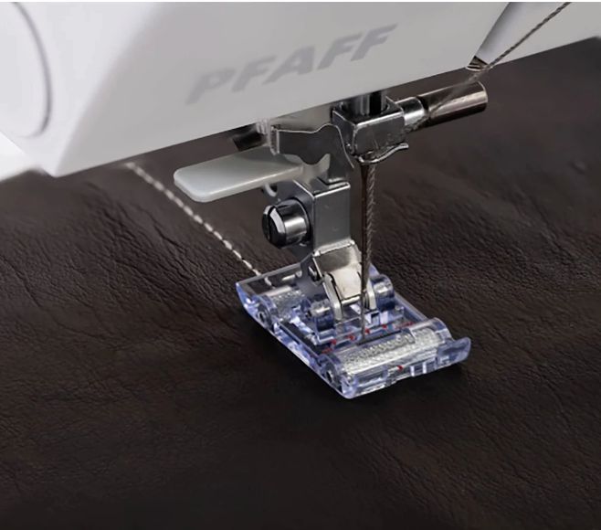 The PFAFF roller foot is a special sewing foot that is characterized by its two metal rollers. These wheels allow you to glide effortlessly over difficult-to-glide materials such as leather or plastic.