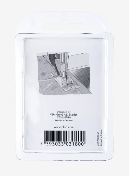 The PFAFF roller foot is a highly specialized sewing foot designed for sewing on difficult-to-glide materials such as leather, plastic or vinyl. The standout feature of this foot is the two metal rollers located on the bottom of the presser foot. These rollers allow effortless gliding over the surface of the materials mentioned, preventing the fabric from sticking or snagging.