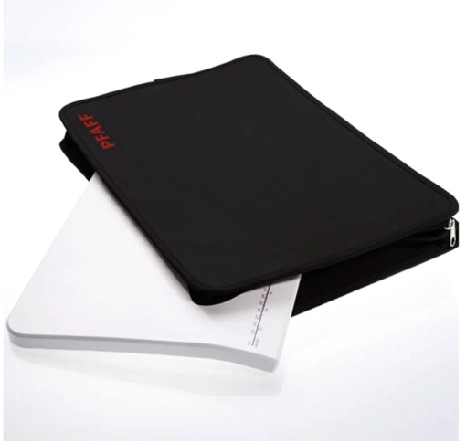Designed for the Pfaff Passport sewing machines, this extension table has a printed ruler with both centimetres and inches so needed measurements are close at hand. The sturdy extension table has adjustable legs and allows you to convert the free arm to an extended flat bed to easily support large projects. A branded bag for the table is included, which can be attached to the back of the machine cover.